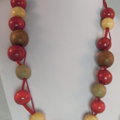 ... Lees Meer over Ketting van veterkoord met houten kralen in rood en bruin